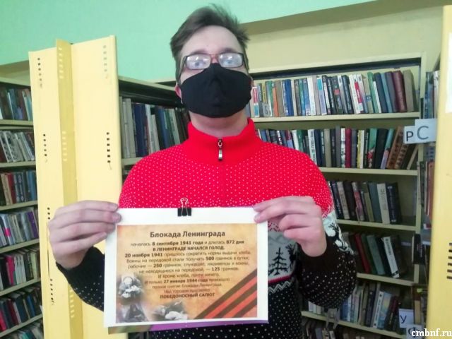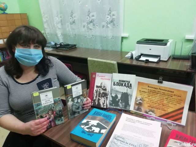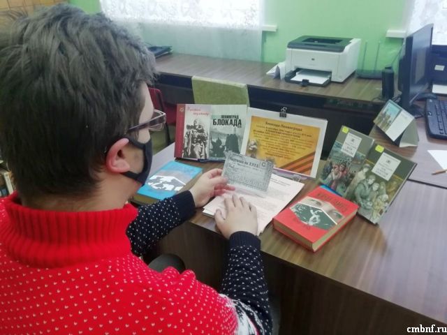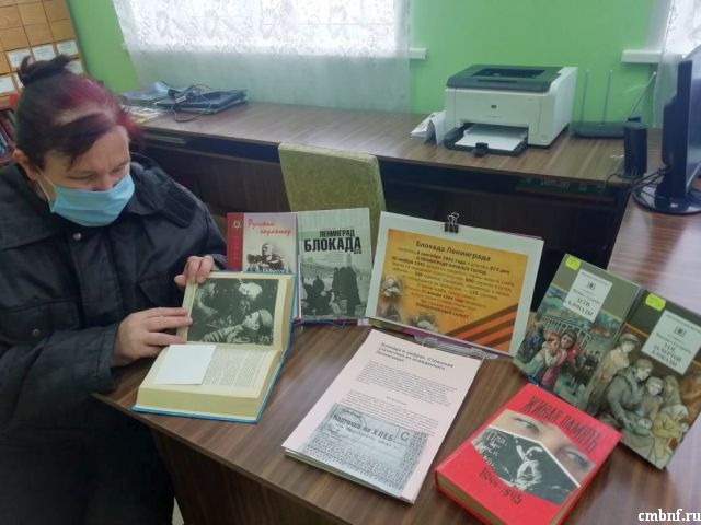 Вниманию читателей была представлена книжная выставка «Непокорённый Ленинград». В заключение мероприятия минутой молчания почтили память ленинградцев, погибших во время блокады.