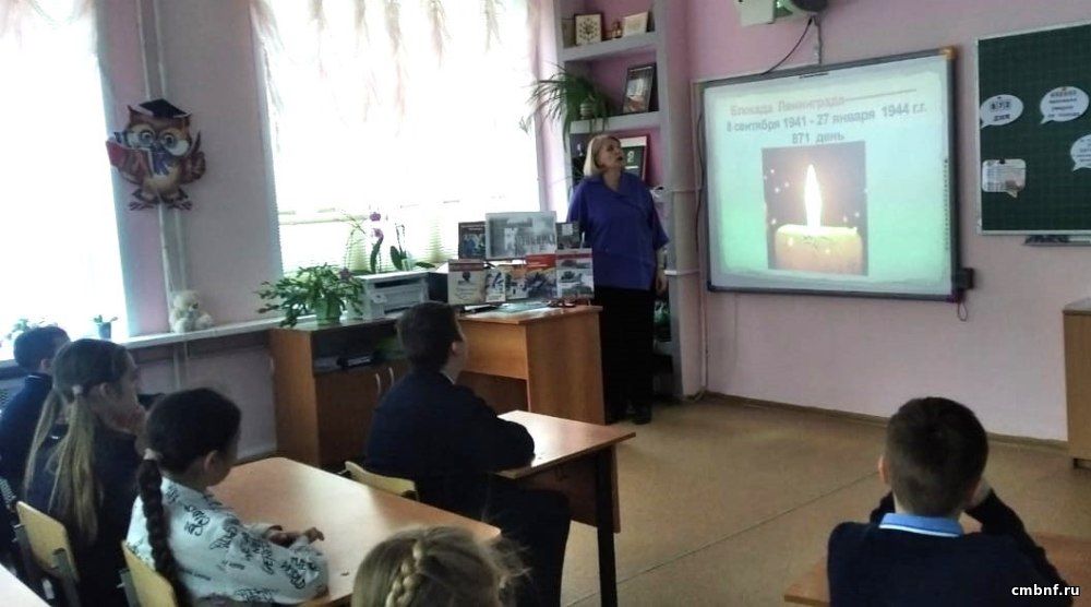 Прошла акция «Блокадный хлеб». Мероприятие сопровождалось показом презентации о непокоренном городе со старыми снимками военного времени. Библиотекарем была представлена книжная выставка «Непокоренный Ленинград». В завершение мероприятия минутой молчания почтили память погибших во время блокады.
