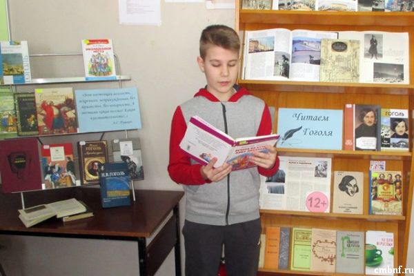 В отделе обслуживания читателей (ул. Латышская, 15б) со 2 апреля действует выставка произведений Н.В. Гоголя для школьников средних и старших классов, где также представлены литературоведческие и критические работы, посвященные биографии и творчеству писателя.