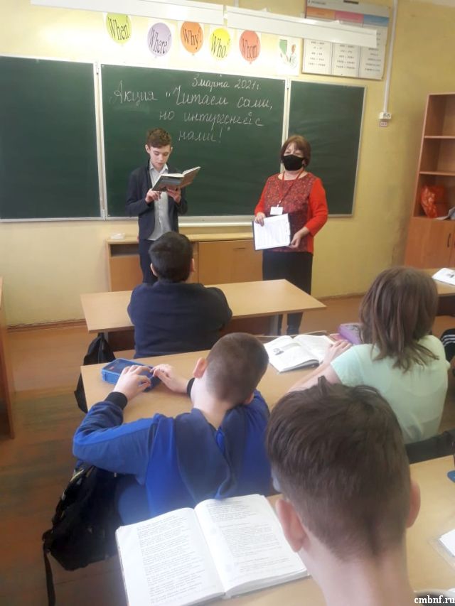 Ежегодно тысячи книголюбов во всём мире посвящают первую среду марта чтению вслух. В этом году Всемирный день чтения вслух выпал на 3 марта. Лозунг этого дня – «Чтение - это движение вперёд». Сотрудник отдела обслуживания читателей С.Ревина провела библиотечную акцию «Читайте сами, но интереснее с нами» с учащимися городской школы № 9.