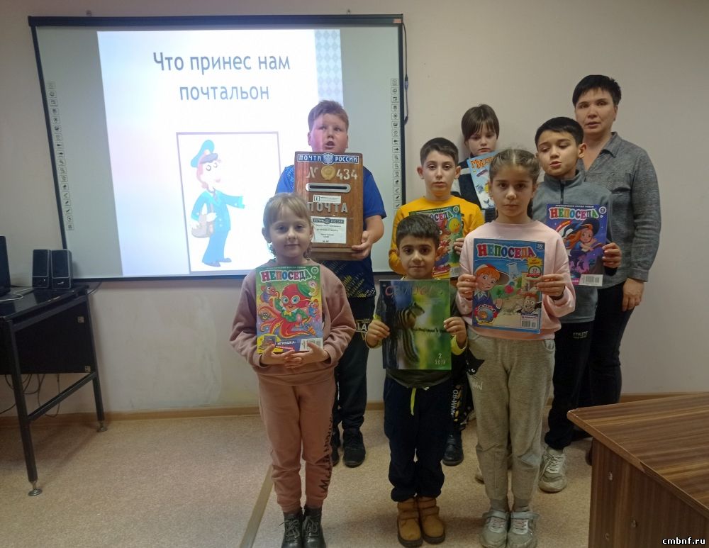 Ребята с интересом рассмотрели различные виды почтовых отправлений, узнали, какие есть подписные издания. Попробовали сами написать телеграмму своим родным и близким. В завершении мероприятия дети с удовольствием посмотрели мультфильм «Трое из Простоквашино».