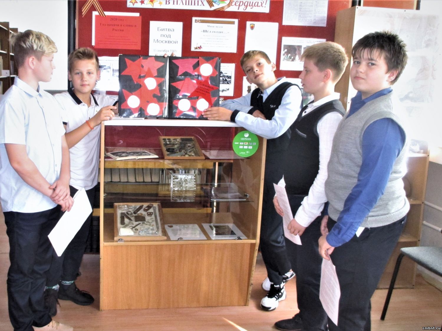 На экскурсии в мини-музее «Шёл солдат…» библиотекарь Терешкова Е.Н. рассказала ребятам о том, как на фронтах Великой Отечественной войны сражались наши земляки-нарофоминцы.