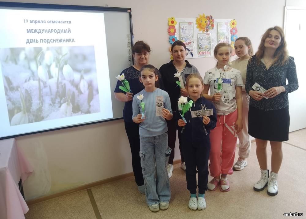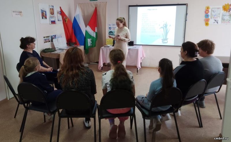 Библиотекарь Оксана Аксенова подготовила для читателей презентацию, познакомила детей с понятиями «первоцветы», более подробно рассказала о подснежнике, о том, что этот цветок занесён в Красную книгу.