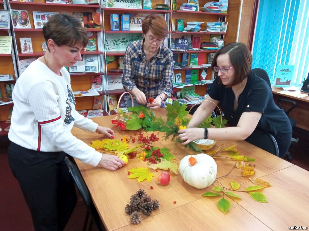 В отдел обслуживания читателей (ул. Маршала Жукова 10) пришли обучающиеся объединения «Учимся играя» (педагог Алымова Елена Петровна), где библиотекарями был подготовлен природный материал для проведения мастер-класса по созданию поделки. Ребята под руководством сотрудников библиотеки дружно взялись за дело и собрали замечательную осеннюю композицию.