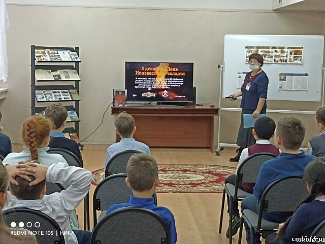 7 декабря сотрудники отдела обслуживания читателей (ул. Латышская, 15б) провели литературно-музыкальную композицию «День неизвестного солдата», посвящённую памятной дате России. 55 лет назад, в 1966 году, в ознаменование 25-летней годовщины разгрома немецких войск под Москвой прах неизвестного солдата был перенесен из братской могилы на 41-м км Ленинградского шоссе и торжественно захоронен в Александровском саду у стен Кремля. На месте захоронения 8 мая 1967 года был открыт мемориальный архитектурный ансамбль "Могила Неизвестного Солдата" и зажжен Вечный огонь. В декабре 1997 года к памятнику был перенесён Пост № 1 почётного караула, который, сменяясь каждый час, несут воины Президентского полка.