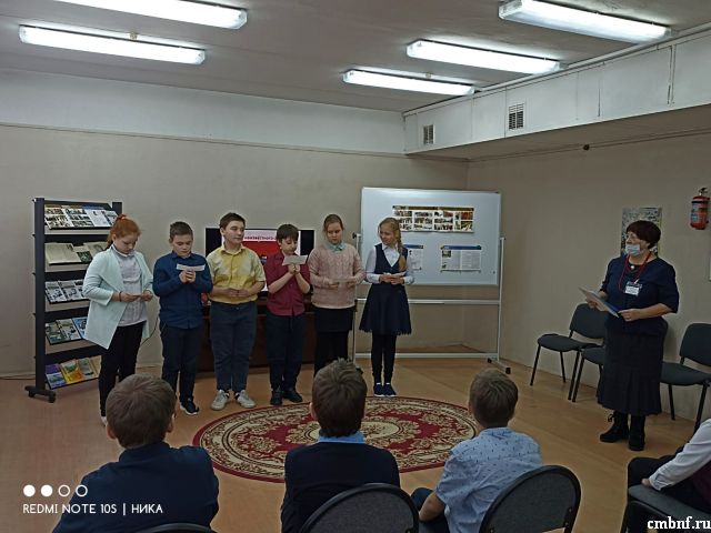 В 2009 году памятнику был присвоен статус общенационального мемориала. Эти исторические факты рассказала присутствующим библиотекарь С.Ревина. Дети читали стихи, посвящённые подвигам Героев. В зале звучали песни военных лет. Память о воинах, не вернувшихся с полей сражений, дети почтили Минутой молчания. Закончилась встреча викториной «Защитники Наро-Фоминска».