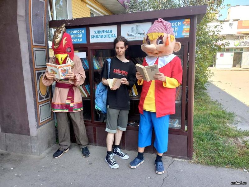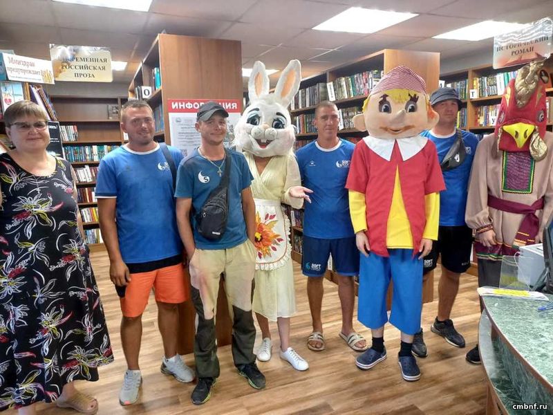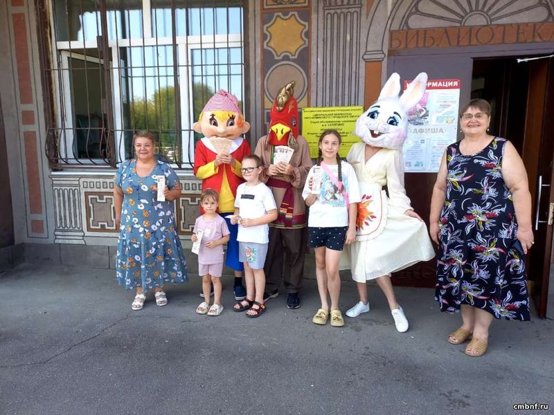 С утра всех посетителей встречали сказочные герои: веселый Буратино, хозяйственная Зайчиха и озорной Петушок. Они раздавали закладки и рекламки, приглашали в библиотеку, помогали сотрудникам рассказывать и показывать книжные «сокровища».
