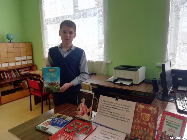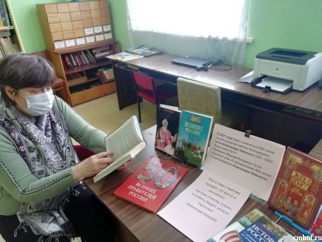 23 апреля в библиотеке д. Устье в рамках заседания клуба «Вместе с книгой мы растем» прошел исторический час «День памяти Александра Невского», посвященный 800-летию со дня рождения великого князя. Библиотекарь Сажина О.И. познакомила читателей с биографией исторического героя земли Русской, рассказала о подвигах знаменитого полководца. К мероприятию была подготовлена тематическая книжная выставка «Александр Невский», на ней представлены книги по истории России, в которых рассказывается о жизни и ратных подвигах святого князя Александра Невского.