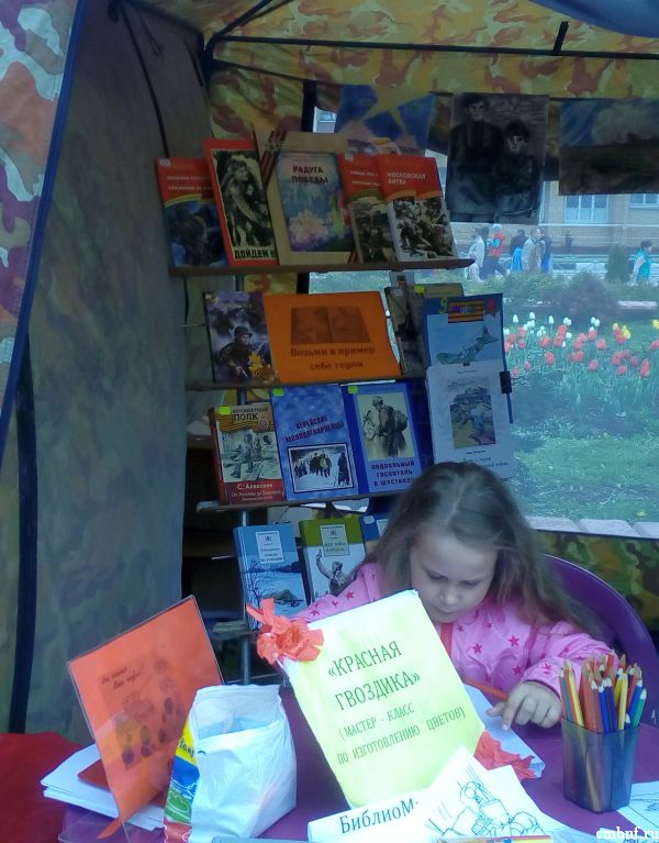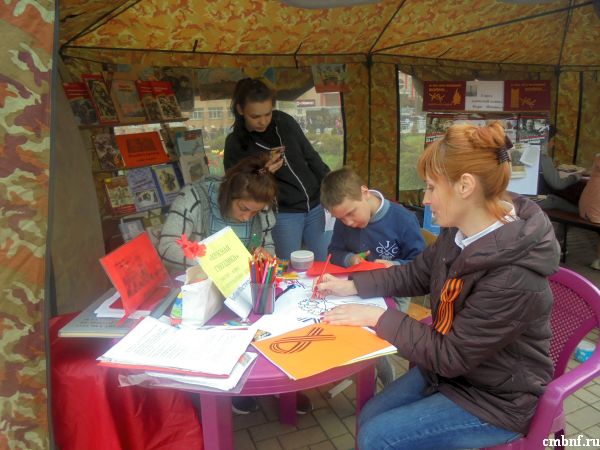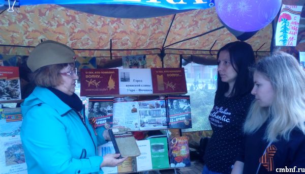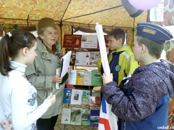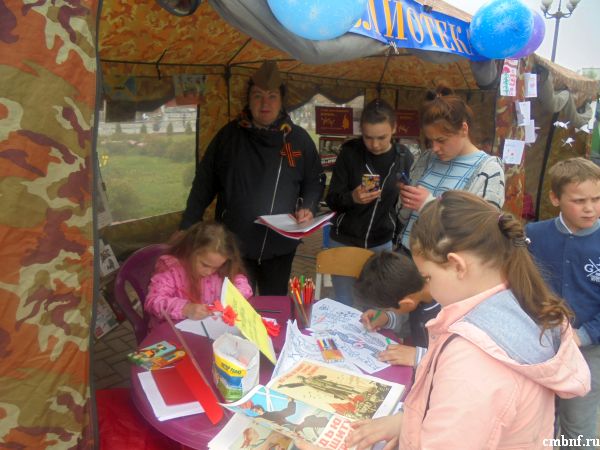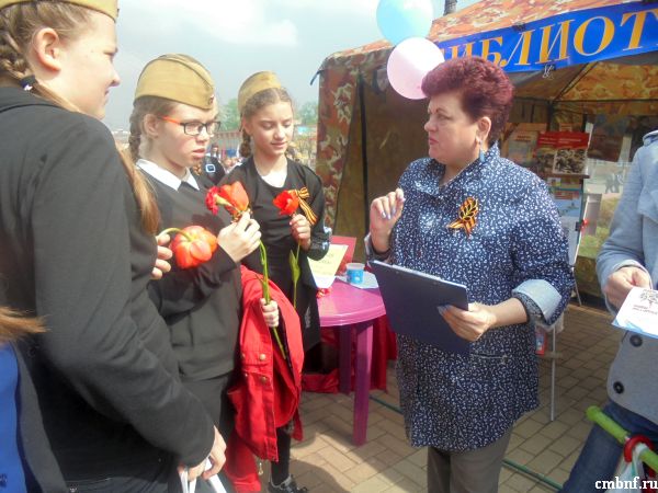 9 мая сотрудники отдела обслуживания читателей приняли участие в городском праздничном мероприятии, посвящённом Дню Победы. Библиотекари подготовили интерактивные книжные выставки «Наро-Фоминск-город воинской славы» и «Возьми в пример себе героя (детские книги о войне)», провели громкие чтения стихов о войне по тематической подборке «Поэты земли Наро-Фоминской», организовали БиблиоМастерскую «Я рисую Победу». Желающие активно принимали участие в предложенных конкурсах и викторинах, а самодеятельная театральная группа школьников 6 «б» класса школы № 5 показала мини-спектакль на военную тем.