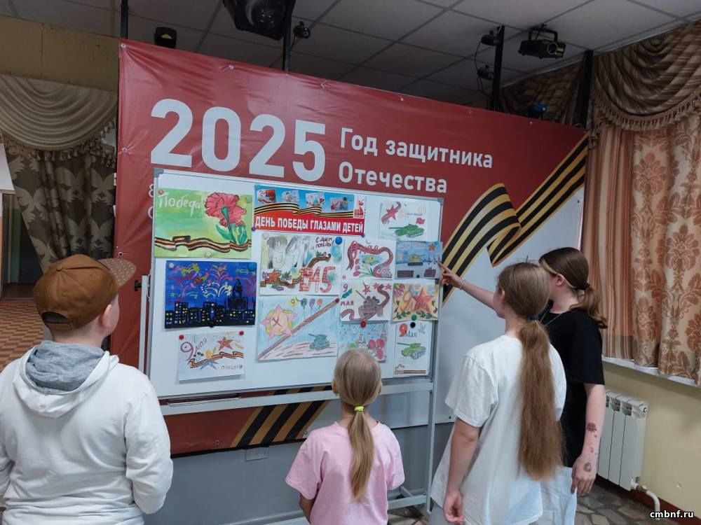 В преддверии празднования 80-летия Победы в Великой Отечественной войне и в рамках Года защитника Отечества в библиотеке д. Головково организована тематическая выставка рисунков "День Победы глазами детей".