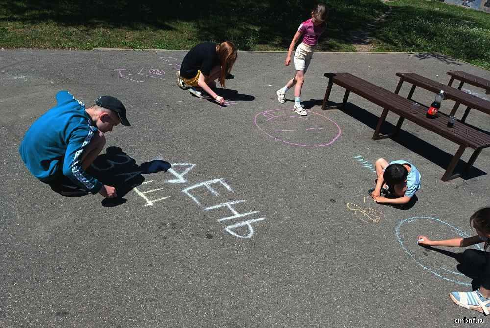 Ко Дню защиты детей на детской площадке в д.Таширово библиотекарем Инной Блинниковой организован конкурс рисунков на асфальте.