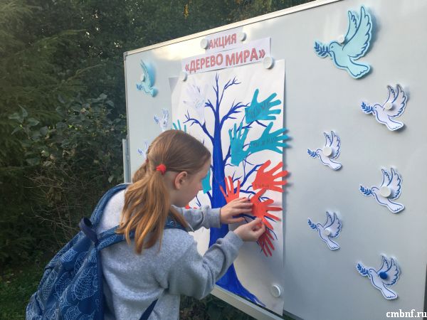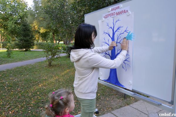 Участникам акции было предложено написать и приклеить ладошки на «Дерево мира» с выражением протеста против терроризма и отдать дань памяти людям, погибшим в Бесланской трагедии.