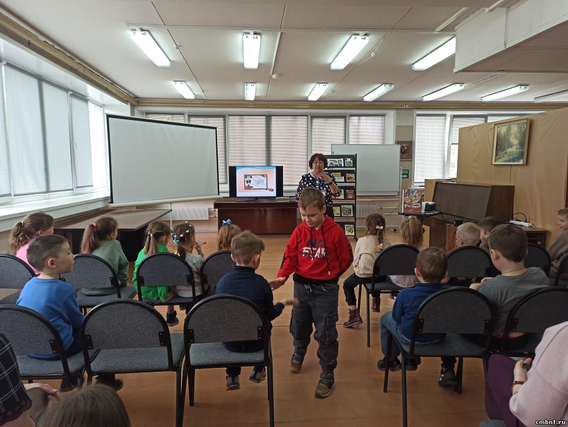 Любовь к Родине, гордость за историческое прошлое России воспитывается у детей с раннего дошкольного возраста. Одной из задач библиотекарей является воспитание патриотизма у молодого поколения, расширение знаний о Великой Отечественной войне. На литературный час мужества сотрудники отдела обслуживания (ул. Латышская, 15б) пригласили самых юных читателей. Разговор шёл о героизме детей, которые тоже сражались с врагом в годы войны. Ребята узнали о подвиге юного наро-фоминца Вити Кусакина, о пионерах-героях. Закончилась встреча знакомством с книгами детских писателей и поэтов, которые отразили в своих произведениях фронтовые и трудовые военные дни.