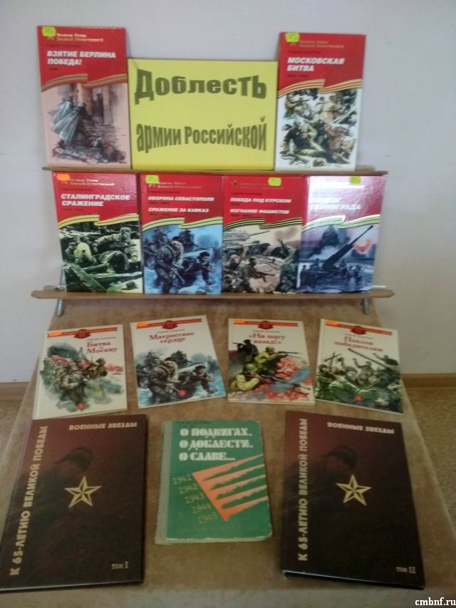Книги, представленные на выставке, расскажут гостям библиотеки о том, что во все времена существования государства Российского, воинская служба была делом чести каждого гражданина, а верное служение своему Отечеству –высшим смыслом жизни и службы воина.