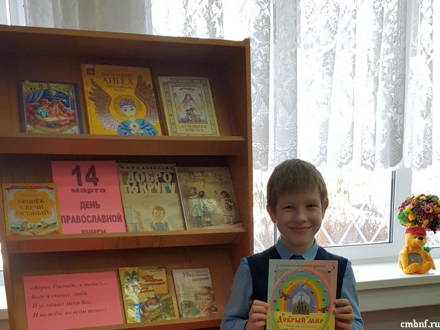 Началась Неделя православной книги, которая продлится до 13 марта. Православная книга — книга о добре и любви. Для читателей отдела обслуживания читателей (ул. Латышская, 15б) подготовлена книжная выставка «Добро всегда вернётся к нам добром». На выставке представлены книги православного содержания, художественные произведения, пособия по воспитанию детей. Выставка призвана показать, что среди бесконечных бестселлеров есть издания, которые помогают развиваться, учиться, жить по совести. Хорошие книги способны разбудить в детской душе самые светлые начала. Книга может быть православной или светской, но самое главное - она должна быть доброй и полезной для детей. Кроме выставки, ребят в эти дни ждут обзоры, беседы, громкие чтения.