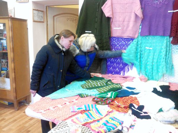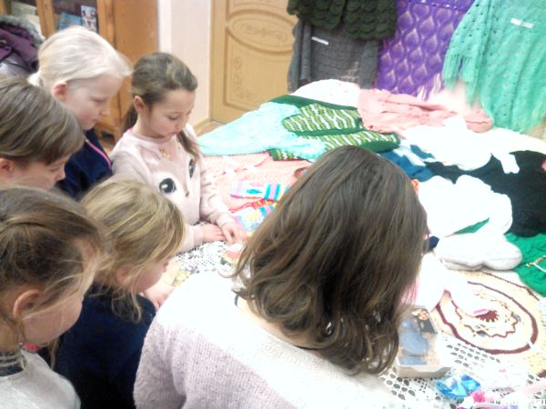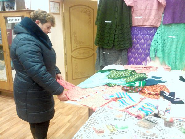 Были представлены вязаные кофты, жилетки, пальто, платки, носки, скатерти, детские игрушки; мыло ручной работы необыкновенной красоты; бантики и ободки; разного рода вазы; вышитые и выложенные из «алмазной» мозаики картины.