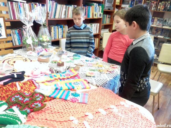 8 февраля выставка завершила свою работу, хозяйки изделий были приглашены в библиотеку, где библиотекарь В.Н. Жукова сердечно поблагодарила всех участниц за их «золотые» руки, вручила каждой грамоту и символический приз.