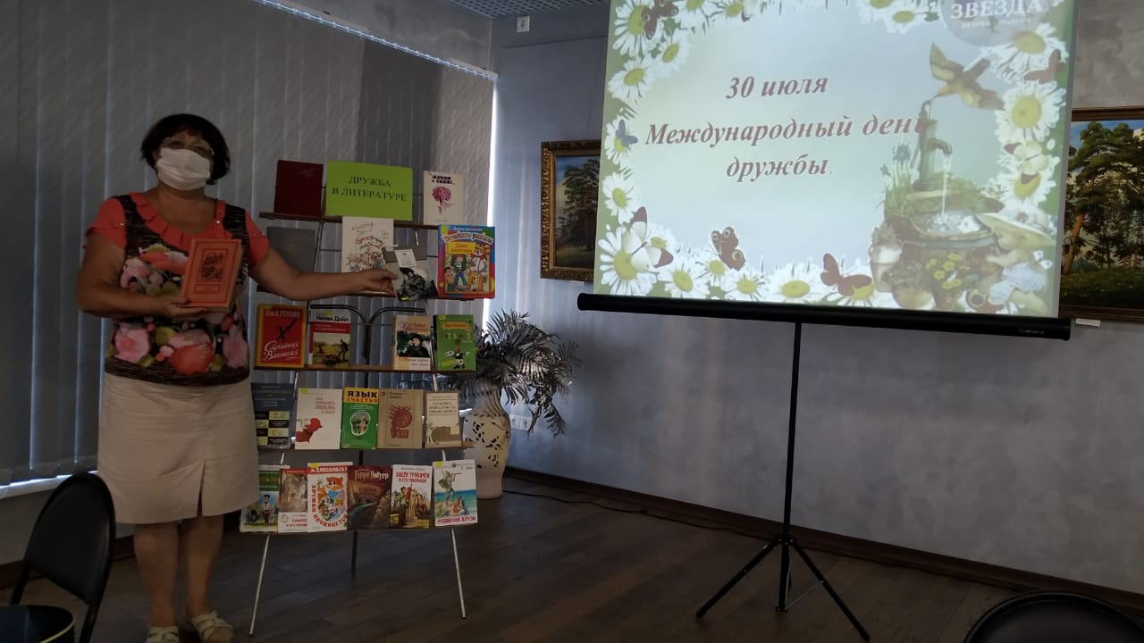 Международный день дружбы - праздник не официальный, но актуальный. Он создан для того, чтобы мы, независимо от жизненных обстоятельств, напоминали своим друзьям, как они важны для нас и порадовали их. Сотрудники отдела обслуживания читателей в этот замечательный праздник пришли в выставочный зал Центрального Дворца культуры «Звезда» на заседание Клуба межнациональной дружбы «Союз» с литературным калейдоскопом «Дружба в литературе». Библиотекарь С. Ревина провела с присутствующими интеллектуальную игру по народным пословицам «Настоящие друзья», викторину «Лучший друг в литературе», провела рекомендательный обзор у книжной выставки.