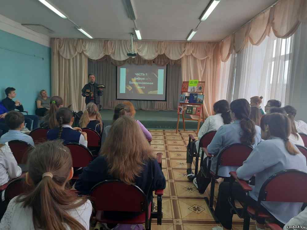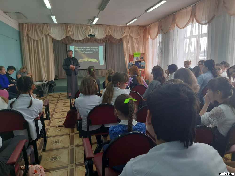 На мероприятие был приглашён Настоятель Храма Димитрия Солунского в с. Дуброво Иерей Михаил Геронимус. Отец Михаил рассказал ребятам, что Библия – это древний памятник письменности, где собраны разнообразные религиозные произведения, создававшиеся на протяжении огромного исторического периода. И самое удивительное – Библия не только не утратила своего значения, но и в наши дни помогает понять самые главные проблемы, которые встают перед каждым человеком. Обращение к православной книге — это возможность переосмыслить идеалы, к которым мы стремимся и хотим найти ответы на многие насущные вопросы. Без духовной жизни будущего нет. К мероприятию подготовлена книжная выставка, на которой представлены яркие иллюстрированные издания. Это научно-популярные книги, повествующие о святых, о храмах, о вере, о культуре православного человека, о православных праздниках. Православные книги настраивают человека на спасение души и показывают пути духовного совершенствования. Это те книги, которые учат милосердию, состраданию, любви к Богу и ближним.