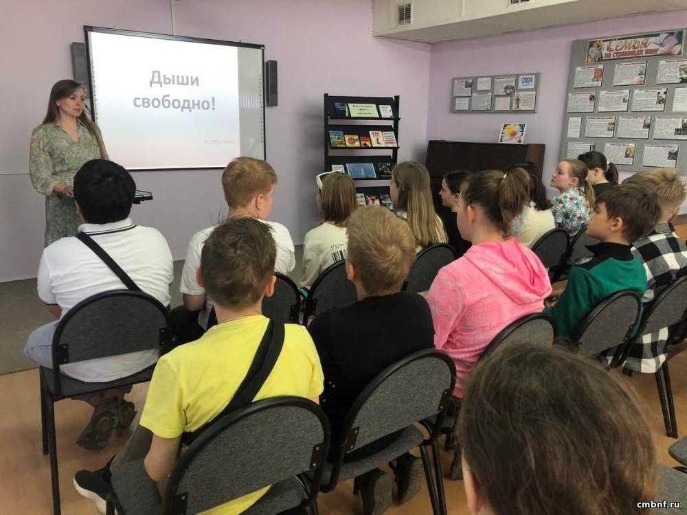 В отделе обслуживания читателей (Латышская, д. 15Б) прошла профилактическая беседа с учениками средней школы № 1 «Дыши свободно!».