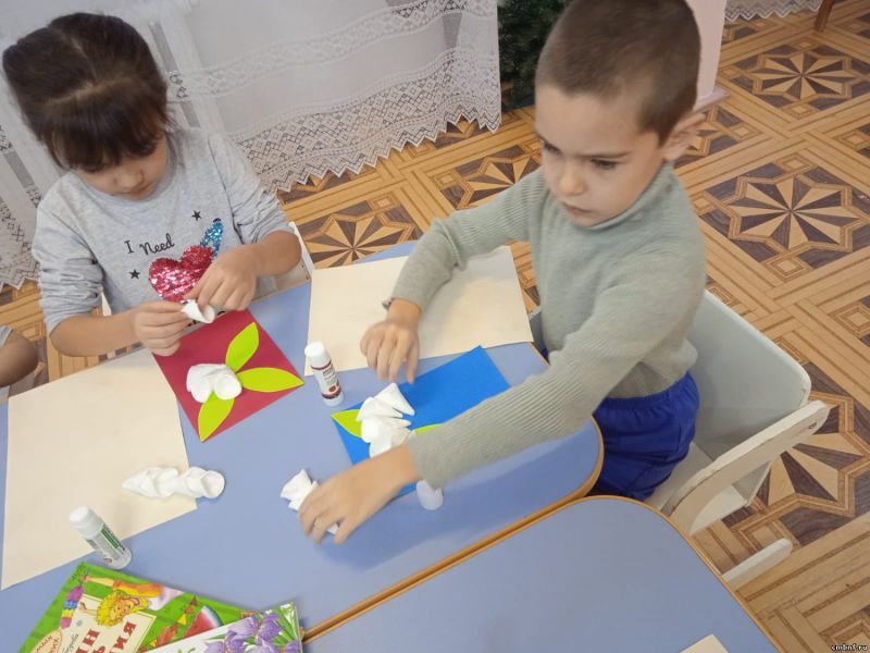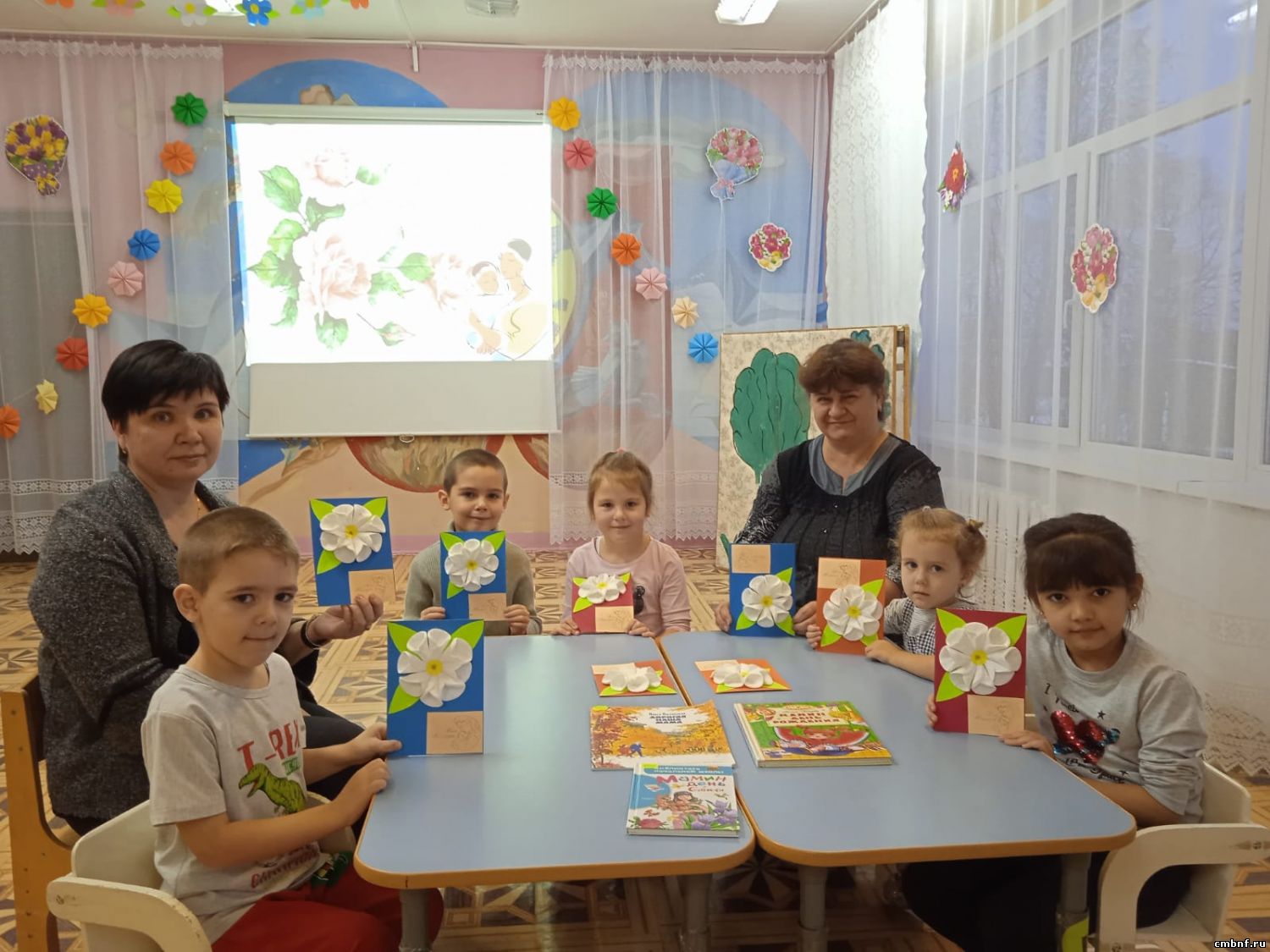 В рамках проекта «Вместе с книгой я расту» библиотекарь Крутина И.А (д.Шустиково) совместно с воспитателем Аксеновой Оксаной Ивановной провели мастер-класс для ребят детского сада №49 «Единственной маме на свете», посвященный Дню матери. В начале мероприятия библиотекарь рассказала историю праздника, прочитала стихотворение С.Михалкова «А что у вас?» и спели песню о маме. Продолжилось мероприятие мастер-классом из цветного картона, бумаги и ватных дисков. Главное – это подарок, сделанный своими руками. Эти открытки сделаны с душой. Надеемся, что такой подарок порадует мам.