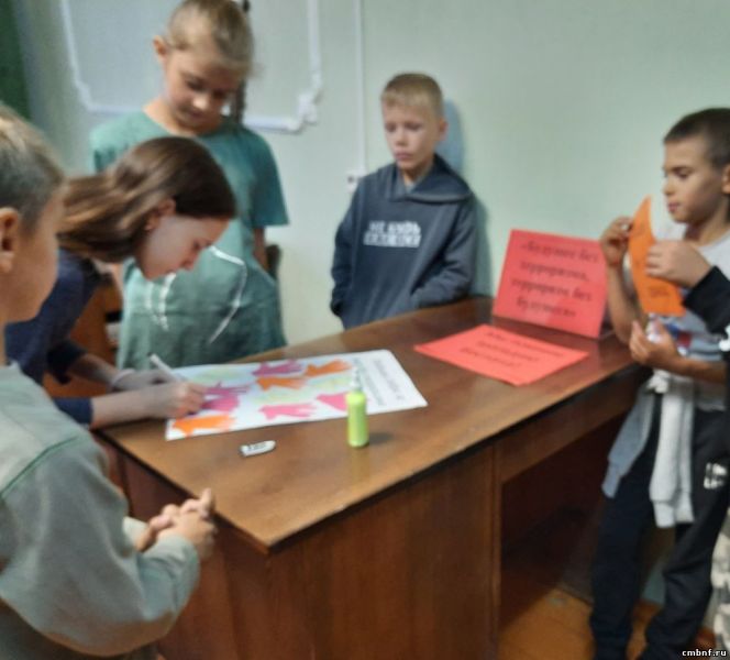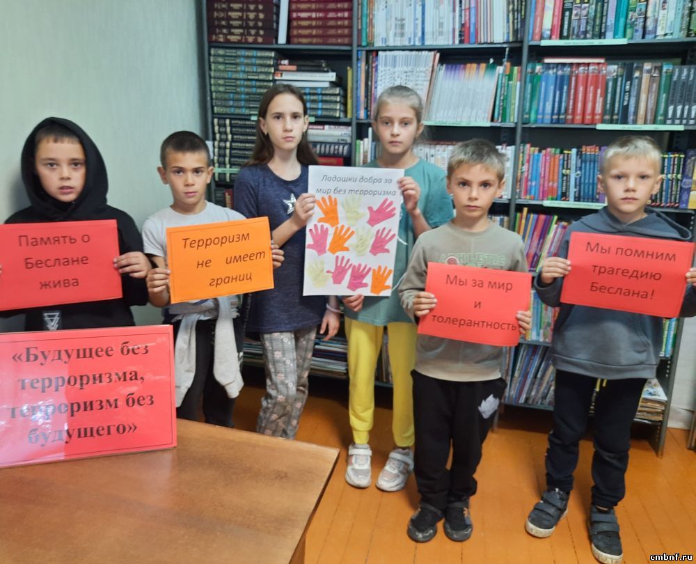 Ежегодно 3 сентября в России отмечается День солидарности в борьбе с терроризмом. В этот день в библиотеке д.Веселево прошел час памяти под названием «Это забыть нельзя!» На мероприятии библиотекарь Л. Бурова рассказала о страшных событиях, произошедших в городе Беслане с 1 по 3 сентября 2004 года, объяснила детям основные правила поведения в ситуации с захватом заложников, напомнила о мерах предосторожности на улице, в транспорте и при общении с незнакомыми людьми. В завершении мероприятия дети оставили отпечатки своих ладошек на белом листе бумаги, как знак протеста терроризму