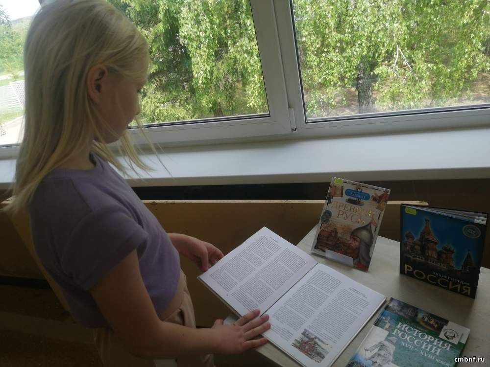 Библиотекарь рассказала детям об истории возникновения праздника День России, геральдике нашей страны: гербе, флаге, гимне.