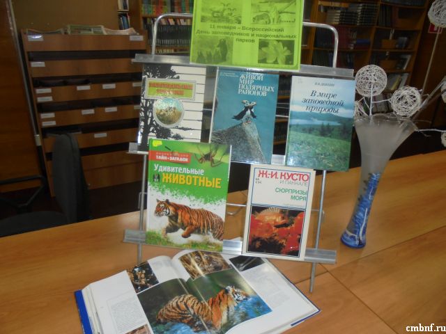 Ежегодно, 11 января, в России отмечается День заповедников и национальных парков. Заповедники и национальные парки – особо охраняемые природные территории - единственный способ уберечь от гибели хотя бы небольшую часть дикой природы и животного мира. 11 января для этого события выбрано не случайно - в этот день в 1917 году в России был образован первый государственный заповедник – Баргузинский. Его целью стало сохранение популяции баргузинского соболя и других животных на Байкале. В настоящее время на территории России расположено более 100 заповедников и 60 национальных парков, которые сохраняют 80% видового богатства растительного и животного мира. В отделе обслуживания читателей (ул. Маршала Жукова, 10) организована книжная выставка изданий про заповедники, проведены тематические викторины с читателями.