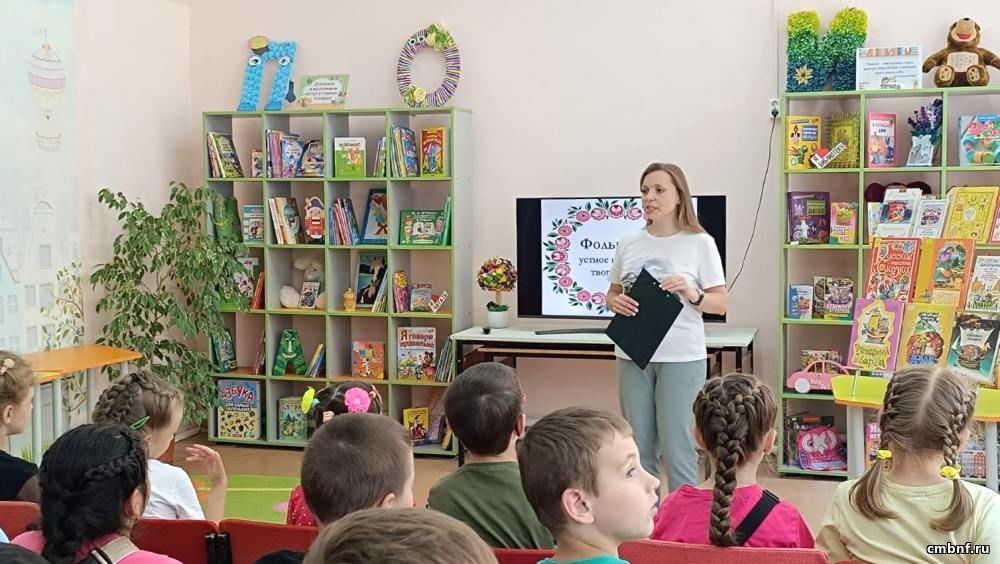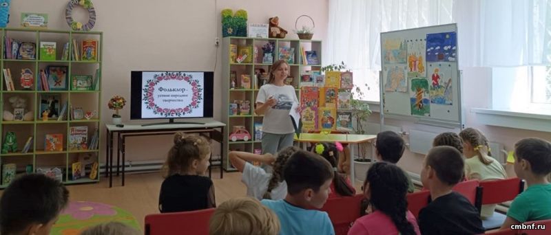 Библиотекарь Галина Антонова познакомила детей с различными видами русского фольклора, рассказала о тесной связи фольклора с бытом русского народа.