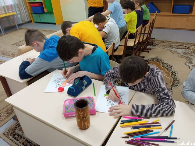 Темой встречи с ребятами из социально-реабилитационного центра «Сказка» был окружающий нас мир. Дети рассказали, что регулярно гуляют и на что они обращают внимание – прежде всего это животные, так как за ними интересно наблюдать. Каждый назвал своего любимого зверя, а затем библиотекарь отдела обслуживания читателей (ул. Маршала Жукова, 10) Нестеренко Л.А. предложила выбрать из приготовленных шаблонов животное, которое им больше всего понравилось, и разукрасить его. В процессе работы с детьми велась беседа о пользе животных, какими они бывают и где чаще всего встречаются, чем питаются и где живут.
