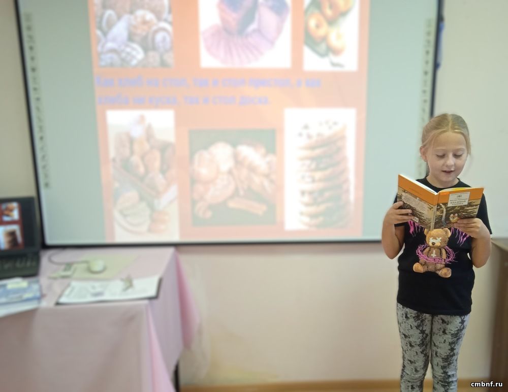Из рассказа библиотекаря Оксаны Аксеновой дети узнали, как выращивали хлеб на Руси и сколько труда вложено в его производство сегодня, познакомились с профессиями людей, которые растят, убирают и пекут хлеб.