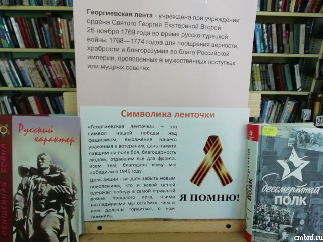 11 мая в библиотеке д. Устье в рамках заседания клуба прошла беседа «Георгиевская ленточка», посвященная Дню Победы. На мероприятии библиотекарь Сажина О.И. познакомила читателей с историей Георгиевской ленты, легендой о Георгии Победоносце. Читатели узнали, что означает каждый цвет на гербе Москвы, где изображен Святой Георгий. К мероприятию была подготовлена тематическая книжная выставка «Лента памяти».