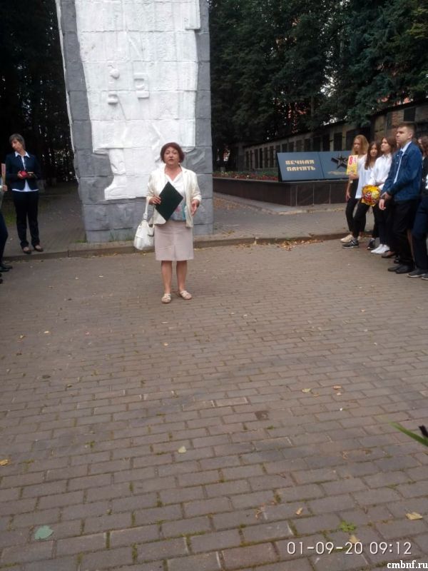 1 сентября традиционный Всероссийский урок посвящён 75-летию Великой Победы. Сотрудники отдела обслуживания читателей Центральной библиотеки на Аллее Героев провели с учащимися средней школы № 7 час мужества «Героев помним имена!». Библиотекарь С.И. Ревина рассказала присутствующим историю создания мемориального комплекса, посвящённого героям Великой Отечественной войны, про подвиги тех, кто защищал наш родной город.