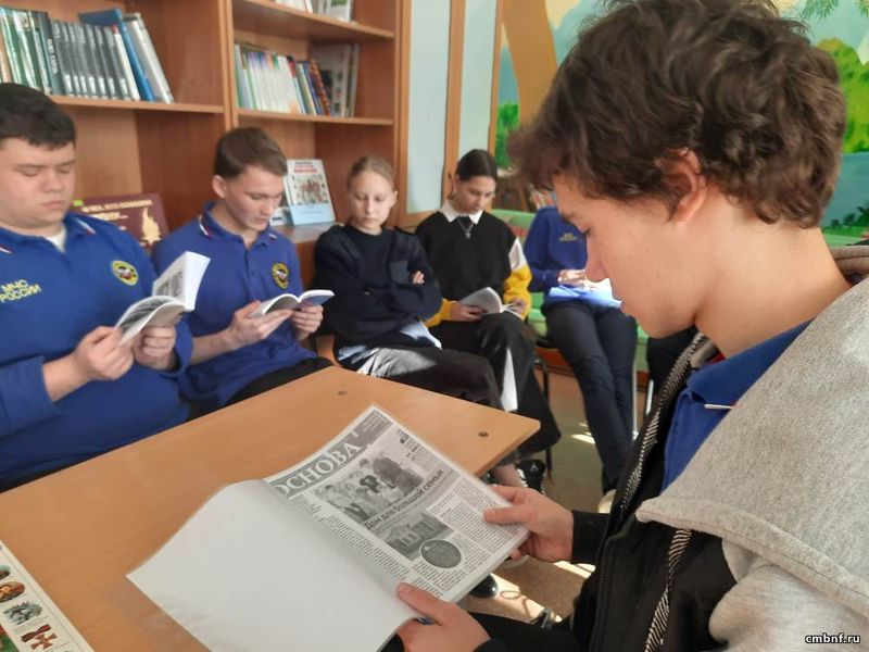 На час мужества «Герои нашего времени», посвященный специальной военной операции на Украине, в библиотеку д.Веселево были приглашены ребята из 10 класса МЧС Веселёвской средней школы.