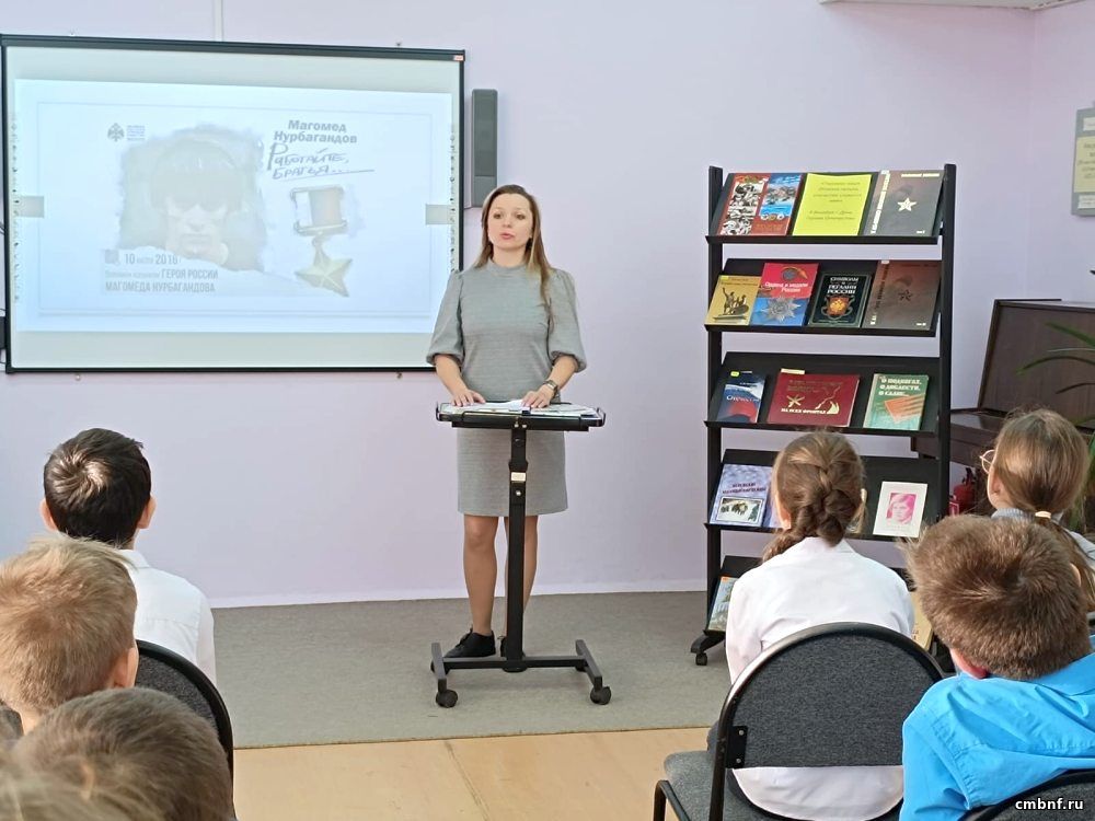 Сотрудники отдела обслуживания читателей (ул. Латышская, 15б) Галина Антонова и Светлана Ревина рассказали об истории возникновения праздника, о его традициях, о героях прошлого и современности, предложили присутствующим поразмышлять о роли героев в истории России.