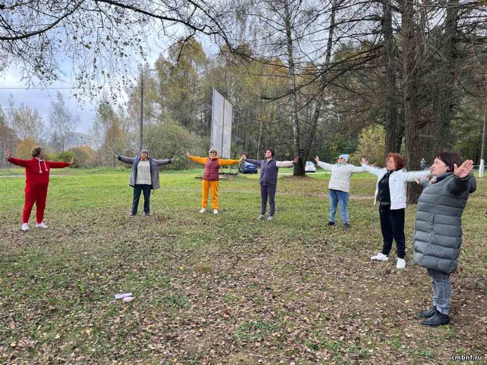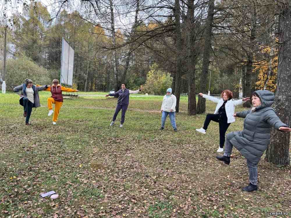 Продолжили занятие суставной гимнастикой и быстрой ходьбой в парке «Елочки».