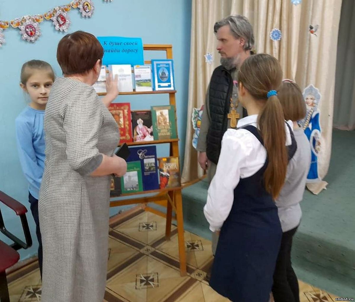 В наше время чрезвычайно важно, когда перед страной стоят сложные и многогранные задачи, воспитывать у детей любовь к родной культуре, ответственное отношение к истории нашей многонациональной страны, уважение к окружающим людям. С приветственным словом к ребятам обратился Настоятель Храма Димитрия Солунского в с. Дуброво Иерей Михаил Геронимус. Библиотекарь Л. Бурова к мероприятию подготовила и провела обзор книжной выставки «К душе своей найди дорогу».