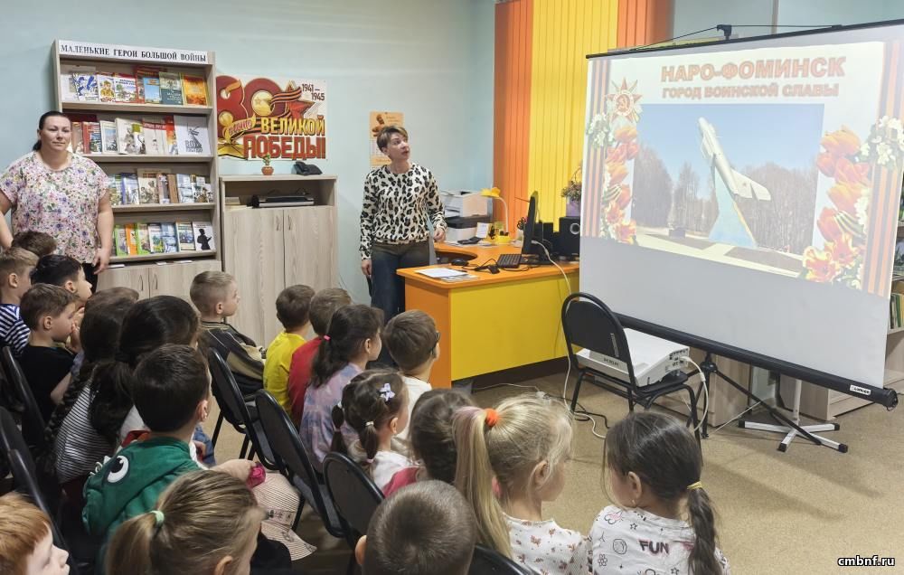 22 апреля Анна Берёза (библиотека ул. Полубоярова,5) рассказала подготовительной группе средней школы № 6 дошкольного отделения № 2 о том, что 27 апреля 2009 года указом Президента Российской Федерации № 463 Наро-Фоминску было присвоено почётное звание «Город воинской славы».