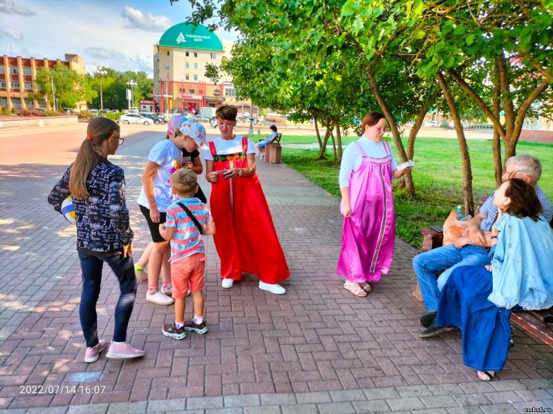 Библиотекари отдела обслуживания читателей (ул. Маршала Жукова 10) Матвиенко А.А. и Кобытева А.А. провели литературно-познавательное путешествие в историю русского слова для детей и взрослых. Участники с интересом играли в игру «Глаголь», в которой на карточках приведен глагол и три варианта его значения, из них надо было выбрать один правильный. Дети с удовольствием угадывали сказки, а потом объясняли, как они понимают значения «устаревших» фраз, узнали для себя много новых и «непонятных» слов. Мероприятие закончилось веселой русской народной подвижной игрой "Ручеек для малышей.