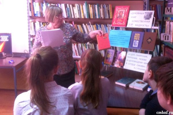 Библиотекарь Хвостова Л.Д. рассказала об истории книгопечатания на Руси, о первых славянских рукописных книгах, первопечатнике Иване Федорове и его подручном Петре Мстиславце, о первой книге «Апостол». Рассказ сопровождался показом слайдов. Была оформлена книжная выставка «Духовных книг божественная мудрость».