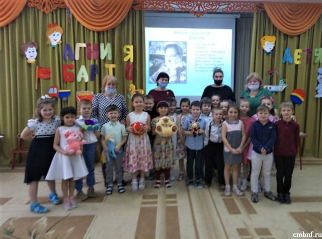 Девчонки и мальчишки, воспитанники детского сада, подготовили литературный монтаж по книге А.Л. Барто «Игрушки», отвечали на вопросы викторины, по отрывкам произведений, угадывали их названия и пересказывали сюжет. Вместе с библиотекарем М.М. Цепковой вспомнили такие стихи, как «Помощница», «Девочка чумазая», « Вовка – добрая душа». Будущие первоклассники внимательно слушали стихи, которые Анна Львовна Барто написала в годы войны, и трогательные строки из цикла «У нас под крылом», написанные о братьях наших меньших. Закончился праздник веселым танцем «Разноцветная игра» и просмотром мультипликационного фильма по творчеству А.Л. Барто.