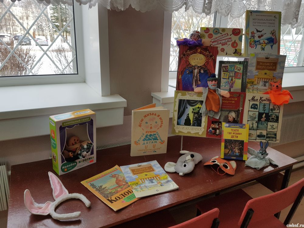 Для детей также подготовлена беседа и красочная книжная выставка « Театр и книга».