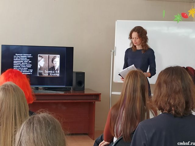 Сотрудники отдела обслуживания читателей (ул. Латышская, 15б) в рамках Всероссийской акции «Культурная суббота» провели встречу с молодежью, посвященную жизни и творчеству О.Берггольц и направленную на духовно-нравственное и патриотическое воспитания подрастающего поколения.