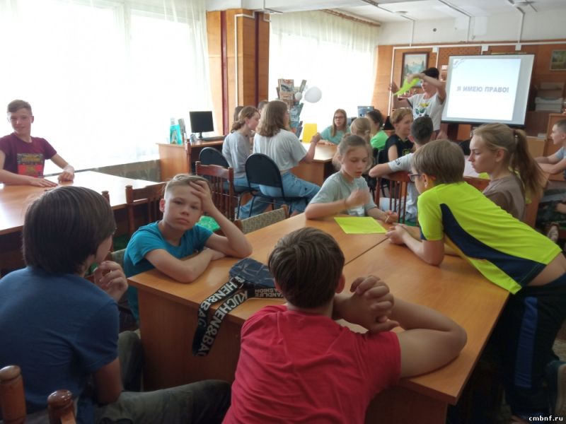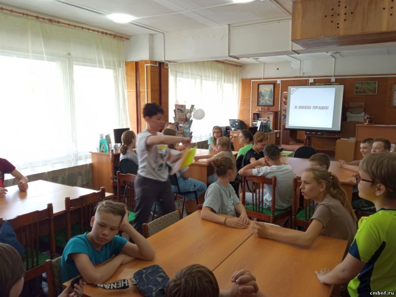 Библиотекарь отдела обслуживания читателей (ул. Маршала Жукова 10) Кобытева А.А. для ребят из летнего лагеря «Умные каникулы» провела интеллектуальную игру-квиз на тему «Я имею право».