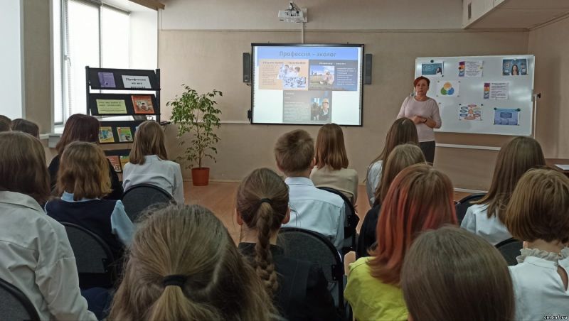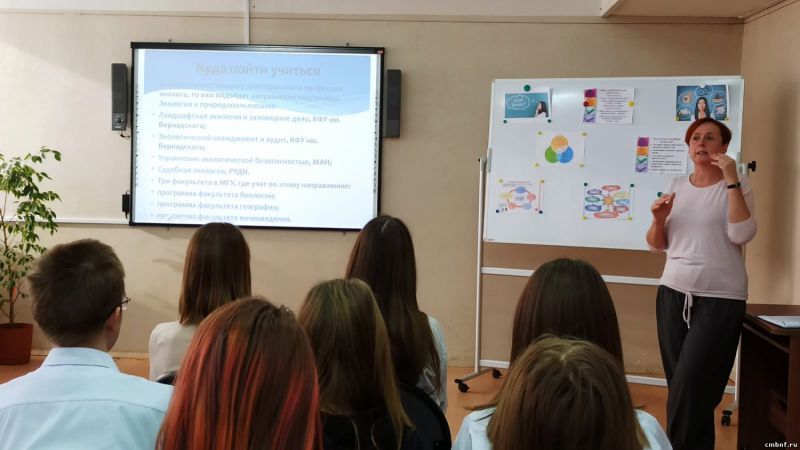 Гость встречи – эксперт экологического отдела Администрации города Наро-Фоминска Е.С. Скрипко – рассказала ребятам о профессии эколога. Елена Сергеевна ответила на вопросы восьмиклассников: куда пойти учиться после школы, в каких сферах может работать специалист. В заключение ребята посмотрели видеоролик о «зеленых» профессиях.
