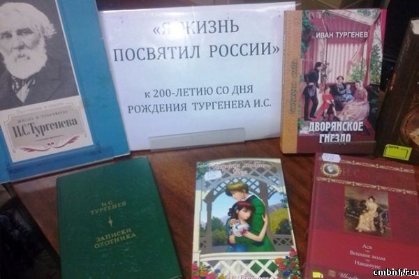 14 ноября сотрудниками отдела обслуживания читателей Центральной библиотеки в литературной гостиной общества «Диабет» был проведён Час литературного портрета, посвящённый 200-летию со дня рождения русского писателя И.С. Тургенева. "Острый и тонкий наблюдатель, точный до мелочей, он рисует своих героев как поэт и живописец…", - отмечал П. Мериме. Библиотекари рассказали о жизни и творчестве И.С. Тургенева, зачитали отрывки из его произведений. В заключение был проведён обзор литературы с книжной выставки.