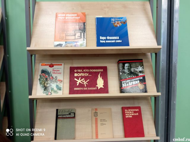 При встрече с учениками средней школы № 7 библиотекари отдела обслуживания читателей (ул. Маршала Жукова 10), подготовили книжную выставку, рассказали о подвигах, отваге и мужестве тех, кто защищал землю Наро-Фоминскую, об улицах, названных в их честь, памятниках, установленных героям. Ребята посмотрели один из выпусков цикла передач, посвященных истории боевых действий за Наро-Фоминск и его окрестности в 1941 году, созданных телеканалом НТК и военным историком В.Мельниковым. Виртуальная выставка «Немеркнущие строки», подготовленная информационно-библиографическим отделом Центральной библиотеки, дала возможность детям узнать, какие книги есть в библиотеке о защитниках, боях, воспоминаниях, хрониках 1941 – 1942 гг. Школьники читали стихи А.Логинова «Наро-Фоминску», «Юность, встань у обелисков», Н.Колдашева «Ветераны» и другие.