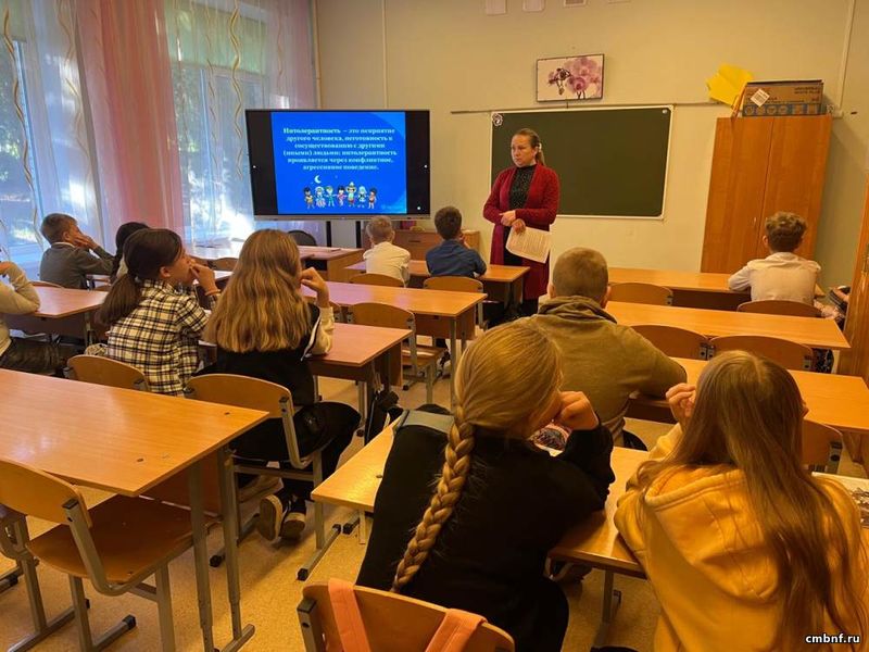 Ребятами вспомнили значение такого сложного понятия, как «толерантность», обсудили, каких людей считают толерантными, разобрали значение слов «интолерантность» и «эмпатия».