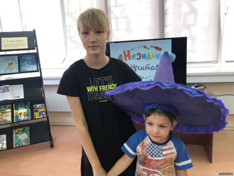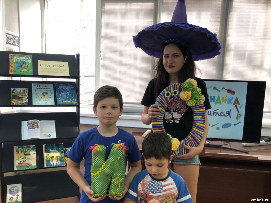 Детям были предложены вопросы по произведениям Н. Носова и В. Драгунского. Волонтёр библиотеки, активная читательница Евгения Макеева, прочитала стихи Юрия Энтина. В зале царила атмосфера праздничного дня, все дружно подпевали героям видеороликов «Гимн Незнайки и его друзей» и «Гимн Знайки и его друзей», желающие примеряли на себя забавную шляпу литературного героя Незнайки. Закончилось мероприятие демонстрацией видеоряда по мультфильму «Незнайка учится».