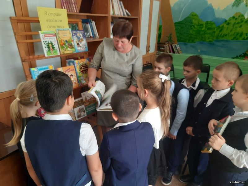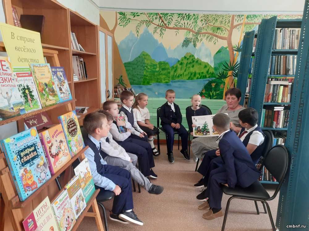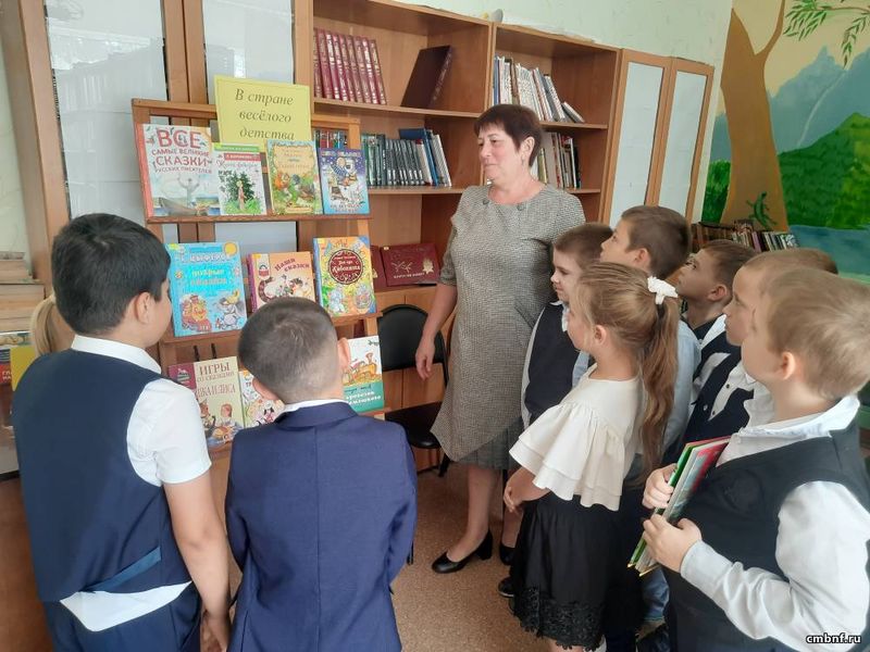 Ребята увлеченно рассматривали предложенные им книги на книжной выставке «В стране веселого детства», в игровой форме читали шуточные задания и с удовольствием выполняли их.